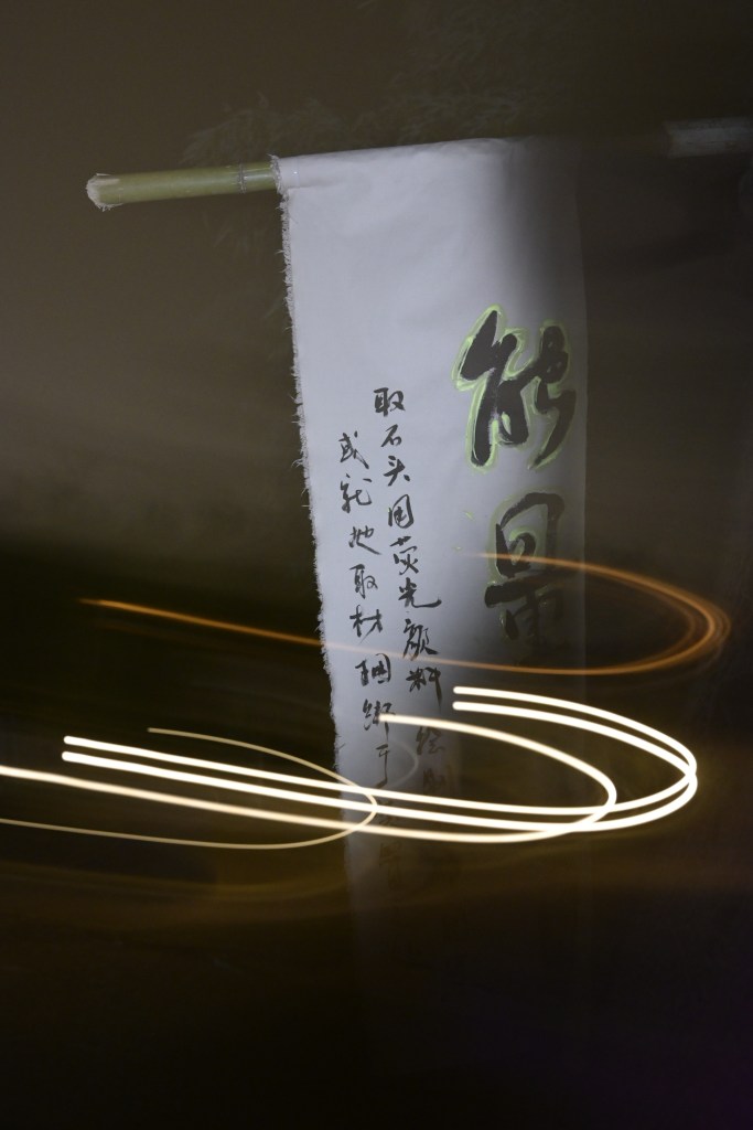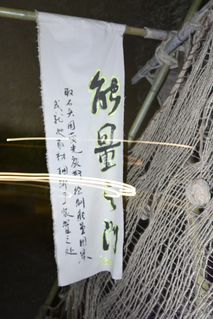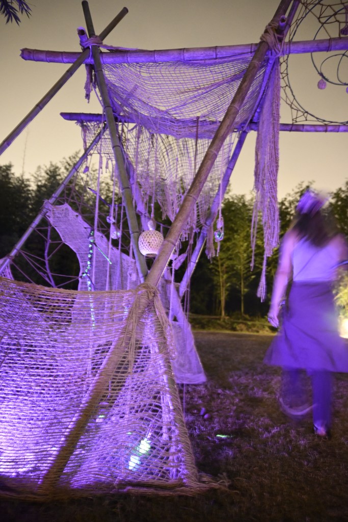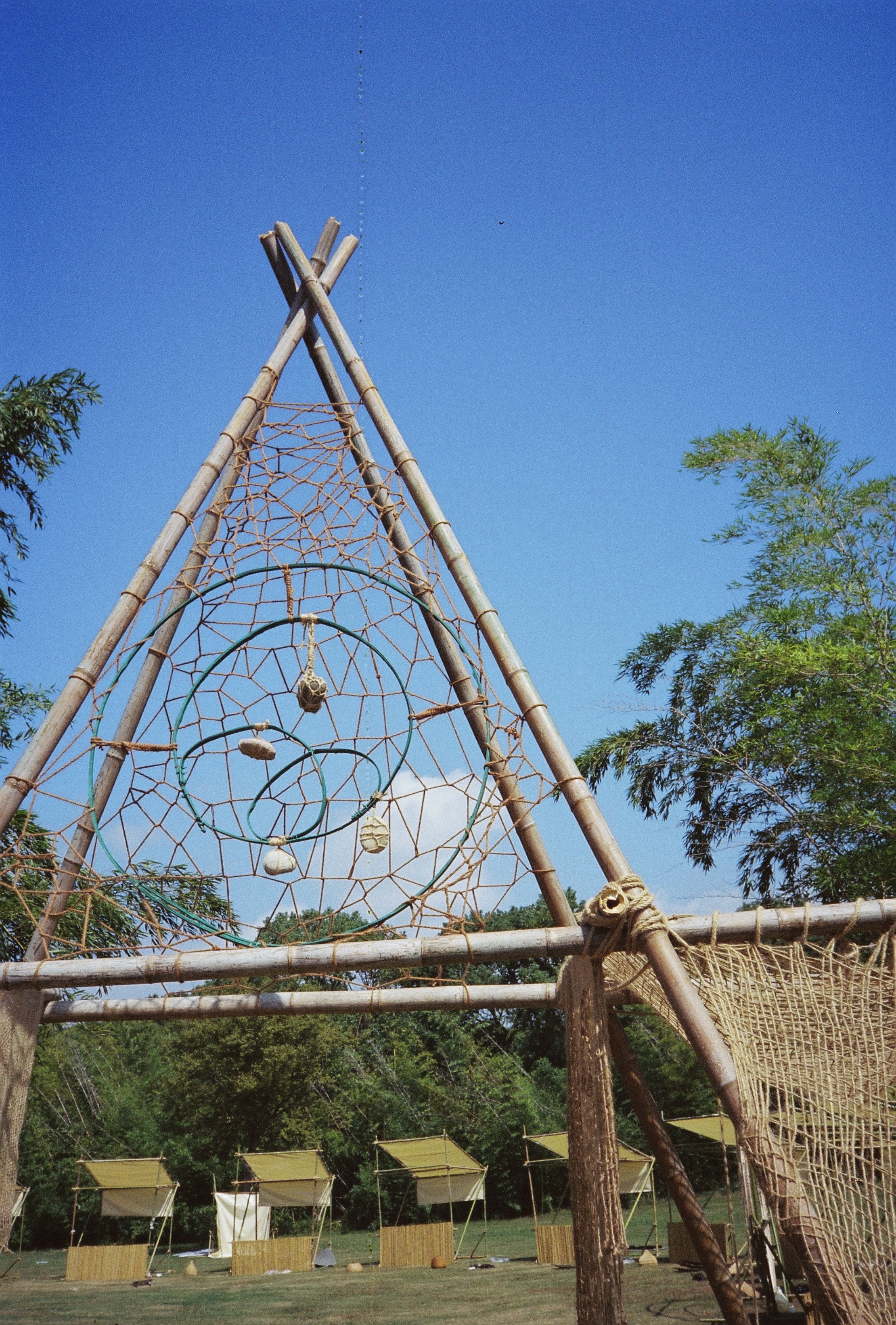 Made from bamboo, castor rope, picked up stones, branches and eco-friendly fluorescent paint.